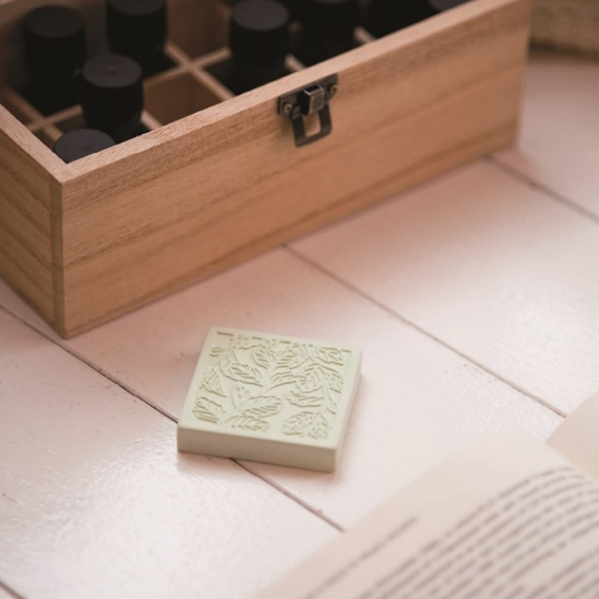 ミントのレリーフを施し、柔らかい色調に仕上げた素焼きのアロマストーンです。